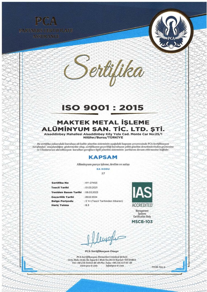 Bugün alüminyum mekanik işlem parkuru ve alüminyum profil satışı ile çalışmalarını sürdüren Maktek Alüminyum 2021 yılında PVC fitil ekstrüzyon üretimine de başlamıştır. Bursa merkezli faaliyetine devam eden firmamız İzmir ve Antalya bölgesine home-ofis olarak hizmet vermektedir.
